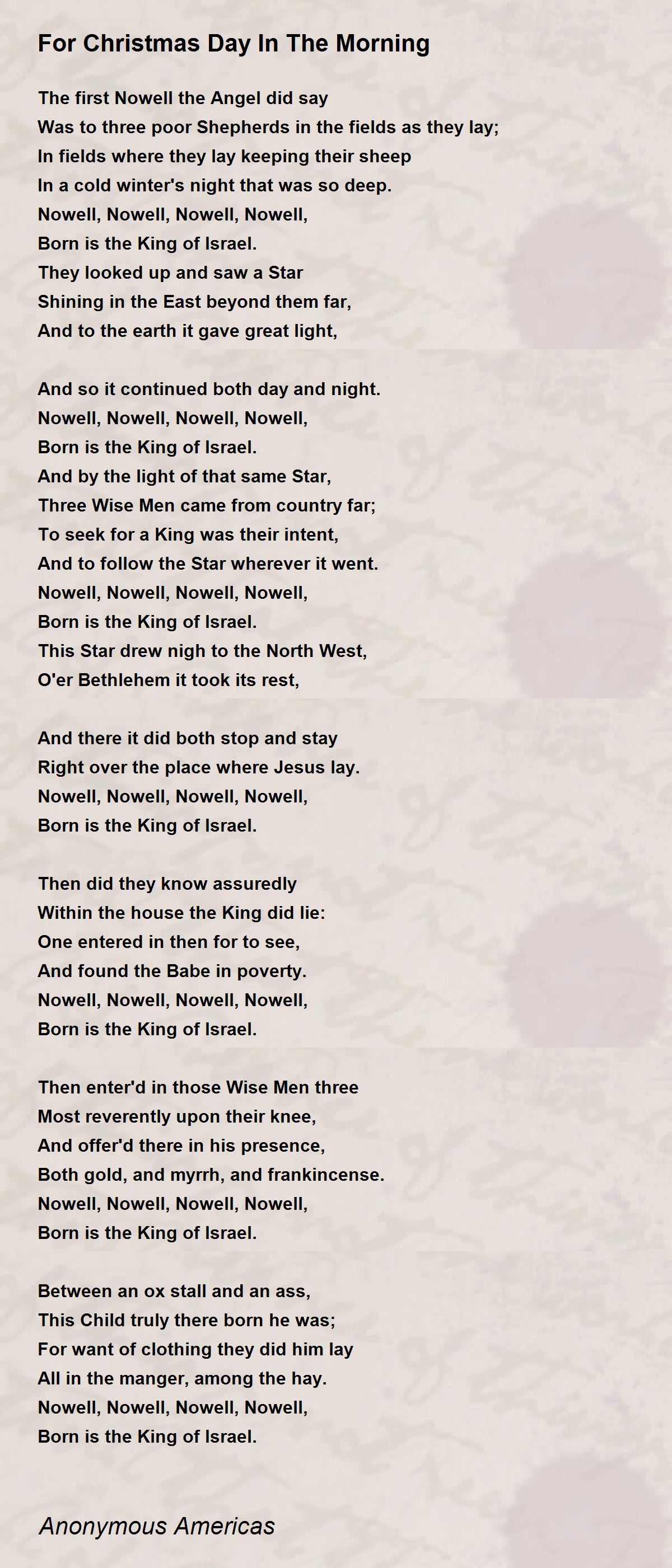 Christmas Day In The Morning翻译 2023. Christmas Day in the Morning Pearl S. Buck He woke up suddenly and completely! Christmas dawn when, alone with the cows in the barn, he had made his first gift of true love. It was four o'clock, the hour at which his father had always called him to get up and help with the milking. It traditionally celebrates Jesus Christ's birth but many aspects of this holiday have pagan origins.